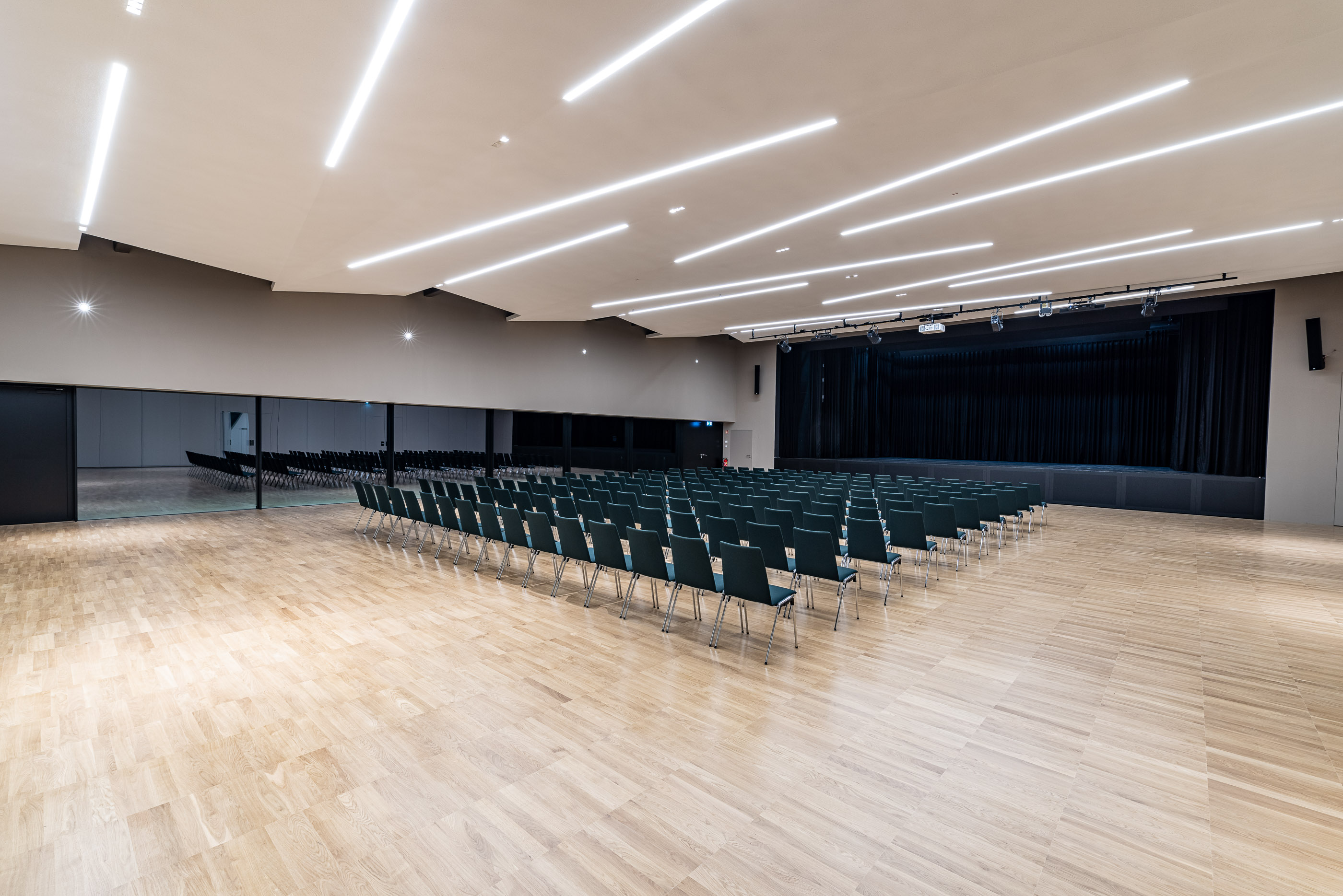 Die Veranstaltungshalle der Stadt Kuppenheim bietet Ihnen reichlich Platz für Ihre Veranstaltungsideen. Der Saal mit seinen 400 qm ist ideal geeignet für Firmenveranstaltungen, Tagungen, Kongresse, Messen, Fortbildungsveranstaltungen, kulturelle Veranstaltungen wie auch Musikveranstaltungen. Die Fläche kann um das 200 qm große Foyer erweitert werden.