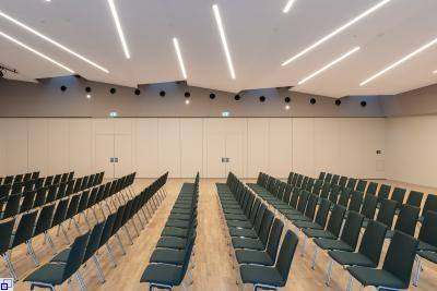 Die Veranstaltungshalle der Stadt Kuppenheim bietet Ihnen reichlich Platz für Ihre Veranstaltungsideen. Der Saal mit seinen 400 qm ist ideal geeignet für Firmenveranstaltungen, Tagungen, Kongresse, Messen, Fortbildungsveranstaltungen, kulturelle Veranstaltungen wie auch Musikveranstaltungen. Die Fläche kann um das 200 qm große Foyer erweitert werden.