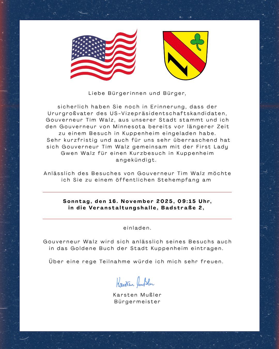 Herzliche Einladung zum öffentlichen Stehempfang!