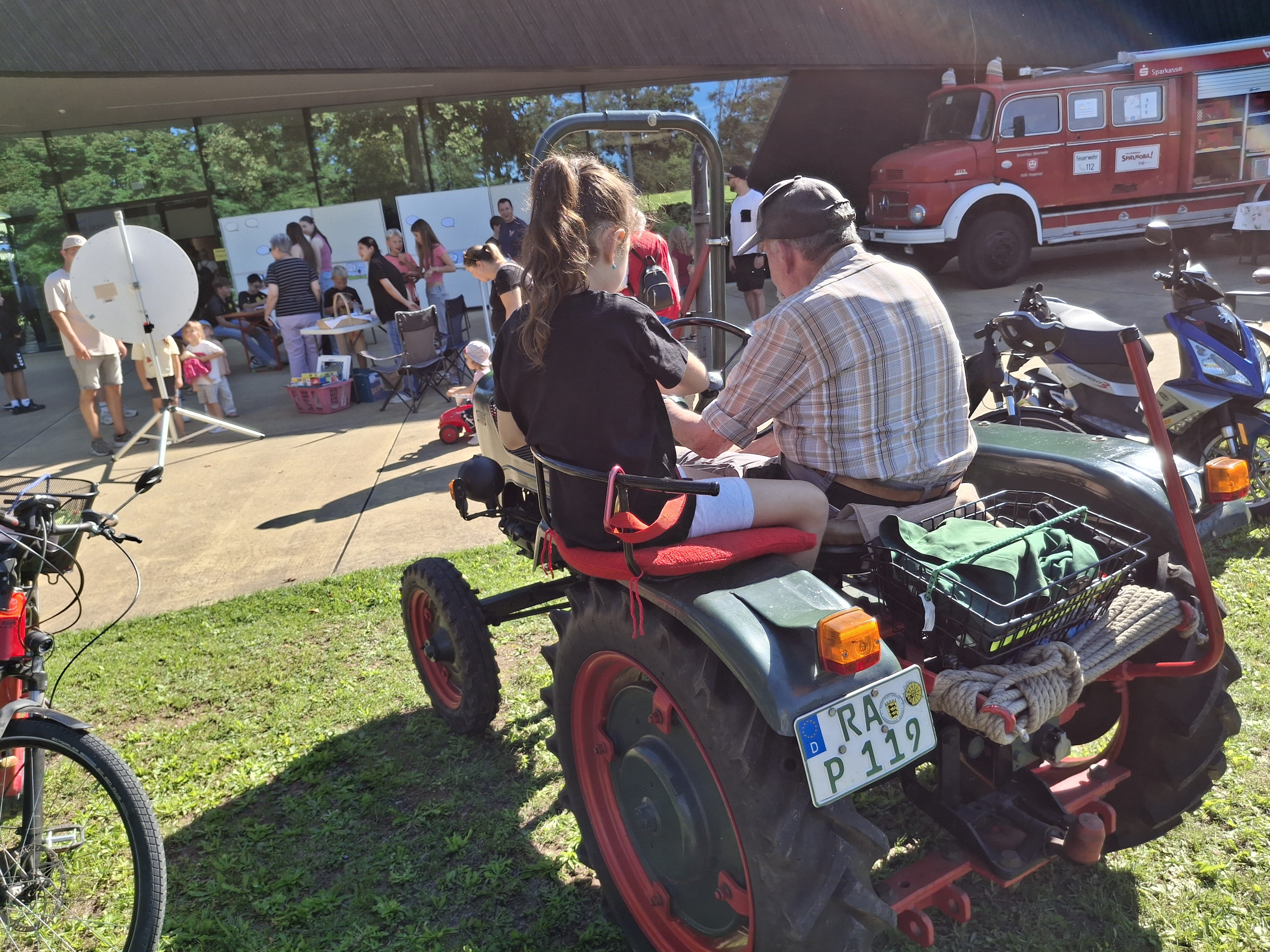 Anschließend eröffnete Bürgermeister Mußler offiziell das Fest, begleitet von zwei mitreißenden Tänzen des Jugend Ensembles und Ensemble 1 vom „Springenden Punkt“. Rund um die Veranstaltungshalle erwartete die Kinder ein abwechslungsreiches Programm: Schnitzen, Basteln, Kinderschminken, ein Glücksrad des Jugendforums, das beliebte Spielmobil von Kindgenau e.V., sowie musikalische Highlights vom Jugendorchester des Harmonika- Spielrings und der Band „Masons Delight“, mit vielen tollen Kinder- Mitmach- Liedern. Ein besonderes Highlight war die spontane Traktorfahrt mit Herrn Gutmann – strahlende Kinderaugen inklusive!