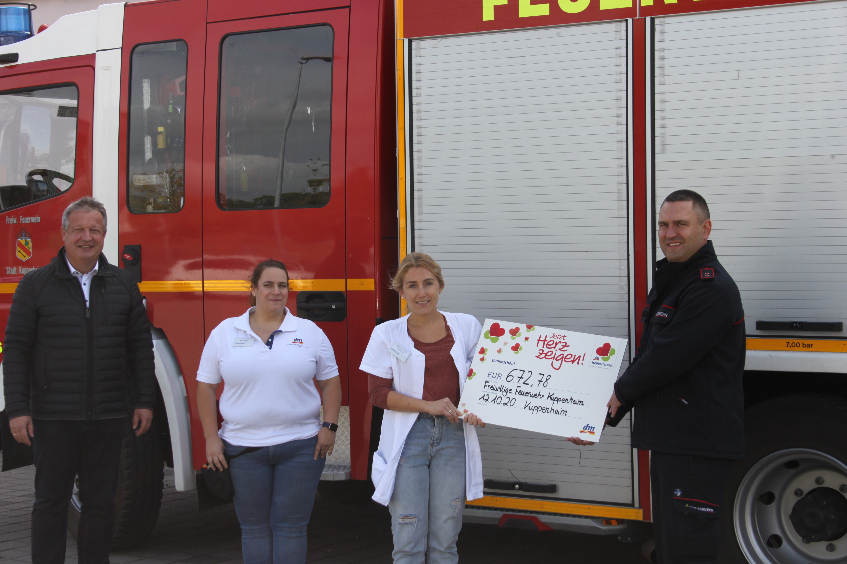 Am 12.10.20 durfte die Jugendfeuerwehr Kuppenheim von der Filialleiterin des dm-Marktes in Kuppenheim einen Scheck über 672,78 € entgegennehmen. Wir wurden in diesem Jahr als Spendenpartner für die Kuppenheimer Filiale ausgewählt.