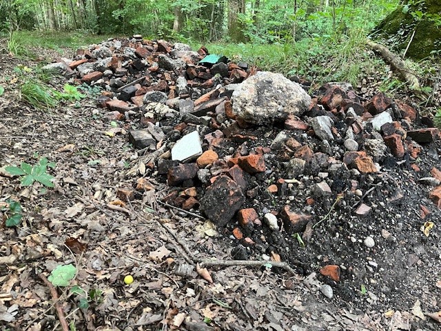 Vor geraumer Zeit wurden nahe des Wasserhochbehälters am Giersbergweg mehrere Kubikmeter Bauschutt von bislang unbekannten Tätern illegal entsorgt.